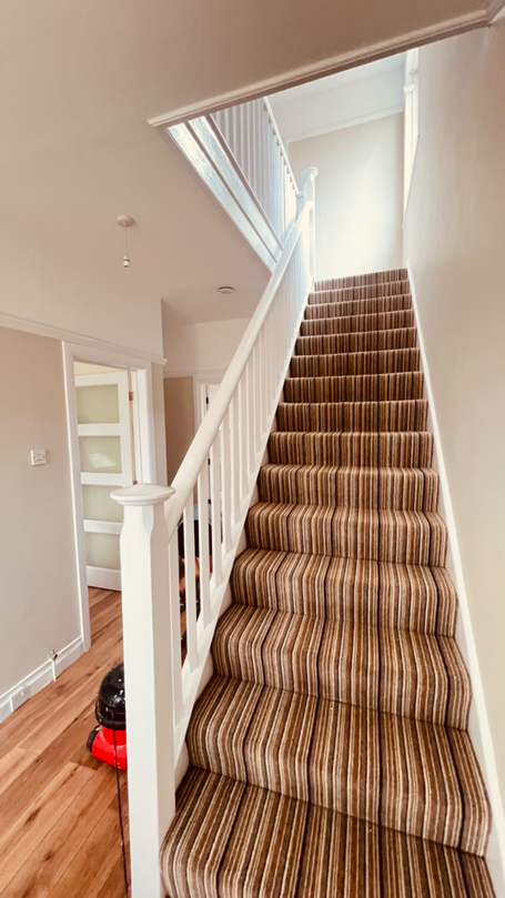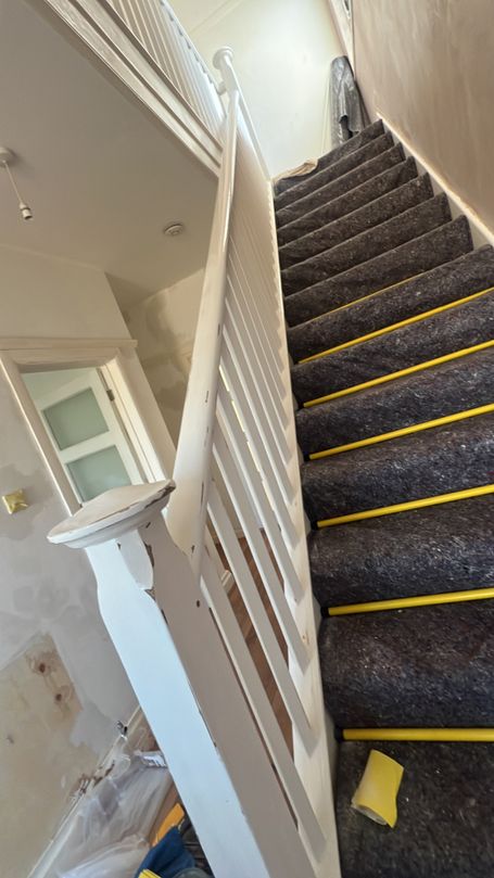 Painting stairwells can be a challenge when dealing with heights, ladders and other equipment whilst protecting carpets safely, especially if a client needs access to a second floor via the stairs.